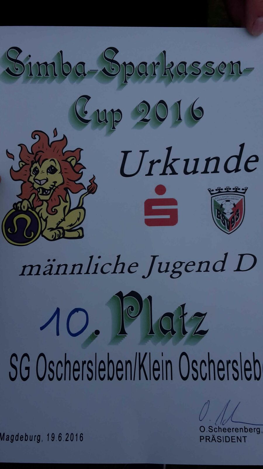 Am 19.06.2016 hat unsere E-Jugend der Spielgemeinschaft Oschersleben/ Klein Oschersleben bei dem Simba- Sparkassen-Cup 2016 in Magdeburg gastiert und somit einen sportlichen und freudigen Sonntag für Kinder, Eltern und Trainer erlebt.