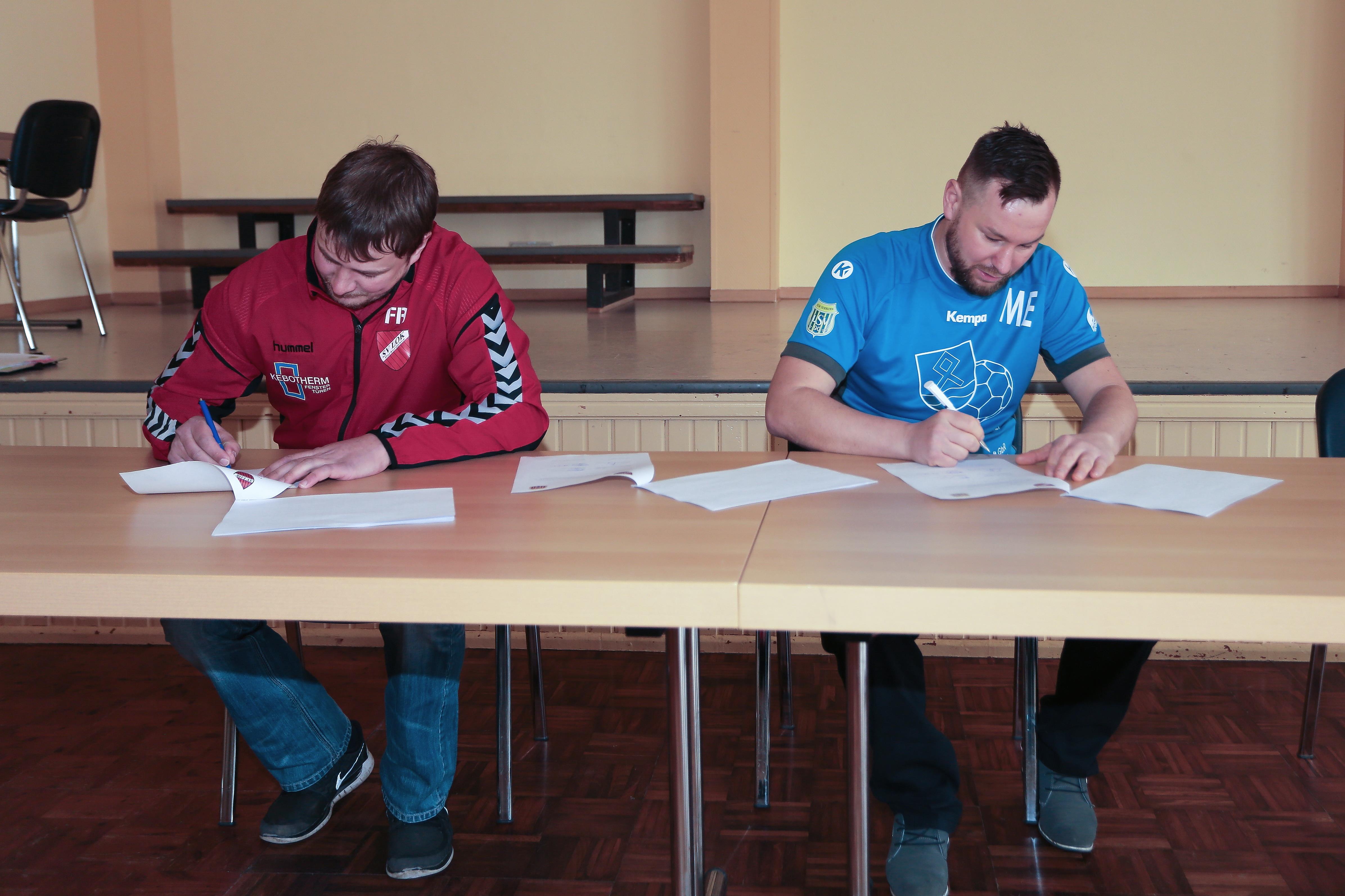 Heute um 11 Uhr wurden im Gemeindesaal Klein Oschersleben entscheidende Unterschriften für die Zukunft des Handballsports in der Region geleistet. Zusammen mit Vertretern vom SV LOK Oschersleben wurden nach langen Vorbereitungen die Verträge zur Gründung der HSG Börde unterzeichnet. Sobald es also die Pandemie zulässt werden ausschließlich Mannschaften der HSG Börde zum Spielbetrieb gemeldet und damit die hervorragende Arbeit im Jugendbereich in allen Altersgruppen fortgesetzt. Eine Arbeitsgruppe rund um den neuen Leiter der Handballspielgemeinschaft Mathias Engelhardt hatte sich in den letzten Wochen, unter den schwierigen Bedingungen, immer wieder abgestimmt, da Termine beim HVSA eingehalten werden mussten. Umso größer war die Erleichterung, dass sich alle Beteiligten rechtzeitig einigen konnten und heute die Verträge unterzeichnet wurden. Auch der Bürgermeister der Stadt Oschersleben Gratulierte beiden Vereinen zur Gründung und brachte neben der Hoffnung auf baldige Öffnung der Sporthallen auch noch eine finanzielle Starthilfe mit. Alle Spieler in der HSG bleiben Mitglied ihres Stammvereins und haben weiterhin alle satzungsmäßigen Rechte und Pflichten. Darüber hinaus erhoffen sich alle Beteiligten mit der Gründung der HSG den Handballsport in unserer Region auf lange Sicht zu stützen und zu fördern da mit vereinten Kräften an den sportlichen Erfolgen gearbeitet werden kann.