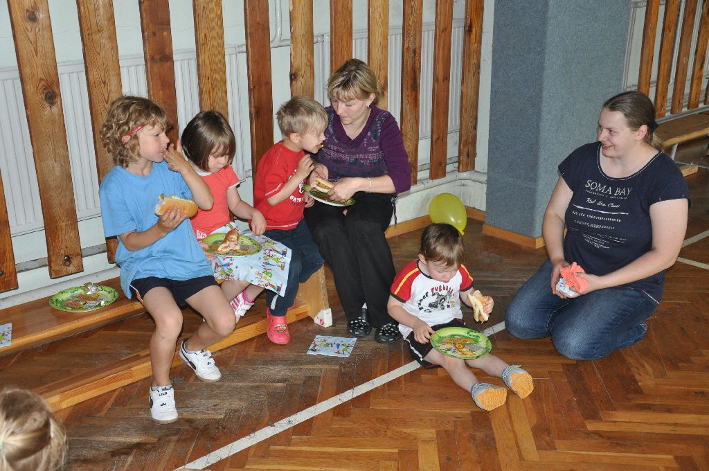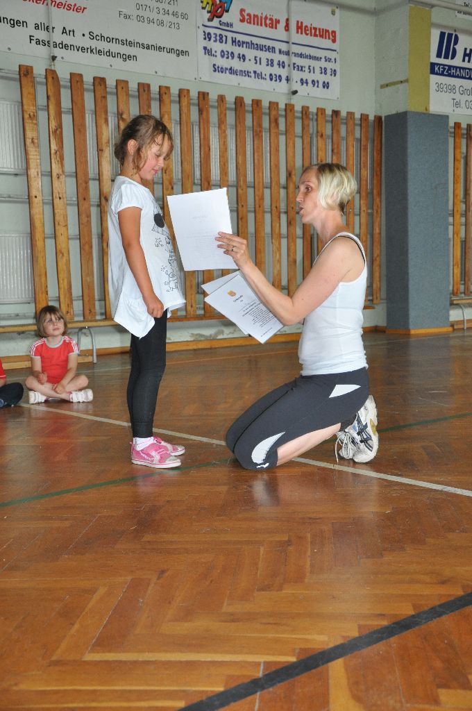 Nun haben es auch unsere kleinsten Sportkinder geschafft – die Kindersportsaison 2012/2013 ist zu Ende. Hinter ihnen liegt eine Saison voller Spaß, Spiele und natürlich auch sportlicher Aktivitäten, denn so eine Rolle vorwärts will schließlich auch erst mal gelernt sein. Mit einfacher Unterstützung eines Sprungbretts und den Matten war jedes unserer Kinder in der Lage, eine Rolle vorwärts zu üben.